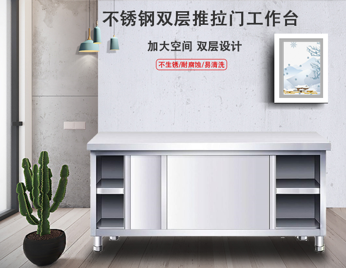 不锈钢双层推拉工作台